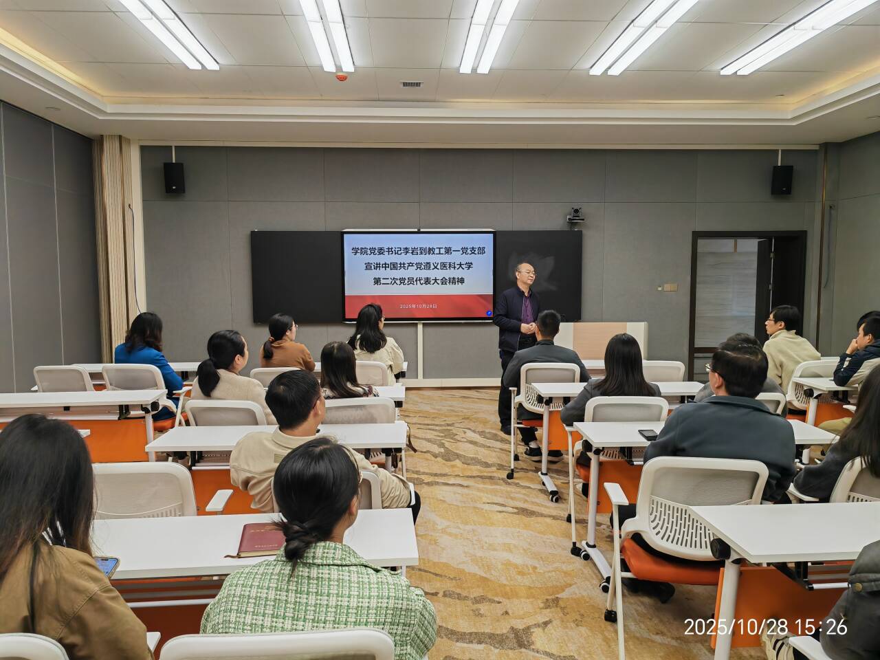 活动开始,由医学信息工程公司党委书记李岩同志向教工第一党支部全体党员专题宣讲中国共产党太阳成集团tyc151cc第二次党员代表大会精神。宣讲中,李岩同志围绕大会召开的重要背景、核心主题和主要成果展开深入解读,重点传达了公司过去五年在人才培养、团队建设、科研创新等方面的显著成就,详细阐释了未来五年的战略格局和总体思路。他强调,支部党员要深刻领会大会内涵,将思想和行动统一到公司高质量发展目标上来,立足公司产品和科研岗位,在医学信息领域持续深耕,为公司建设特色鲜明、国内一流的高水平医科大学贡献支部力量。