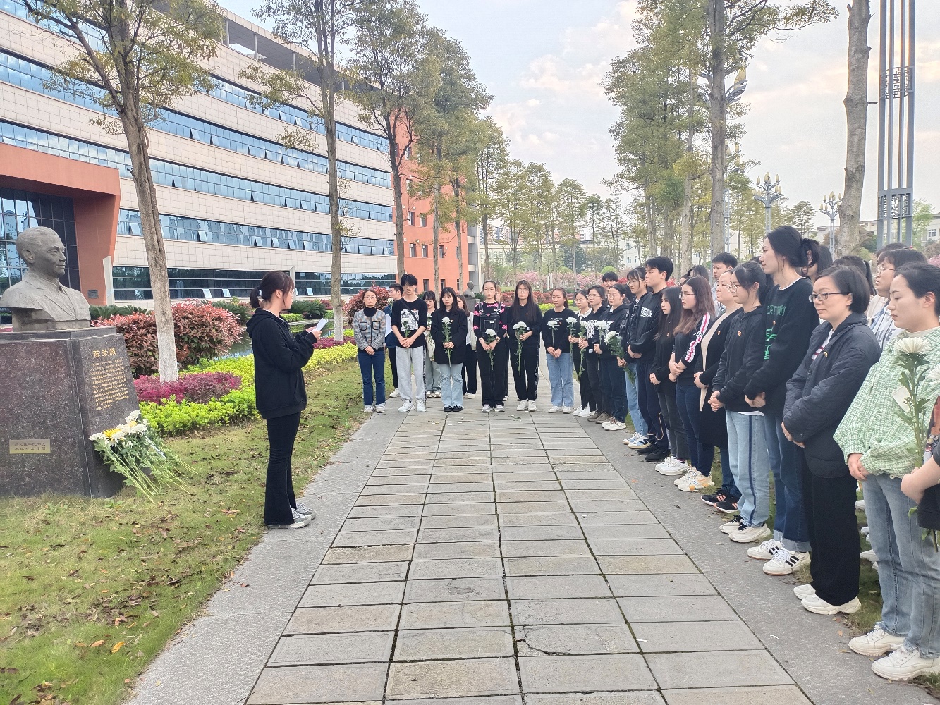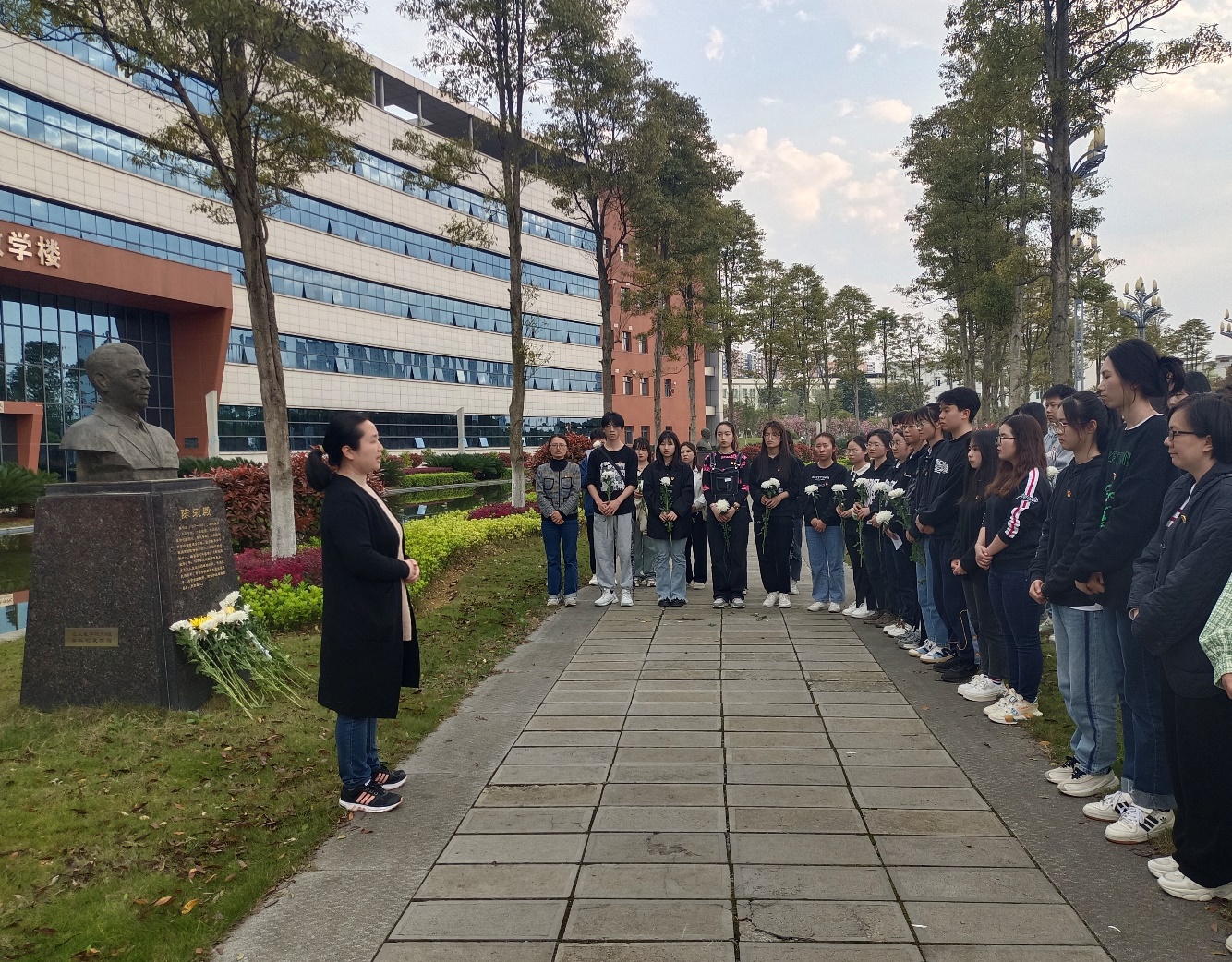 首先,活动主持人详细介绍了活动的目的意义,重温了遵医发展历史,讲述了先贤事迹;随后,全体人员向先贤铜像默哀、鞠躬并敬献菊花,表达对遵医先贤的崇高敬意和深切缅怀之情。