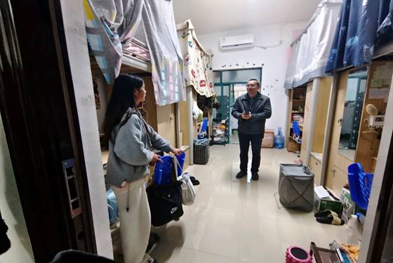 太阳成集团tyc151cc经理王晓华、副经理罗旭于近期分别走访所联系的员工寝室,深入了解员工学习和生活情况,倾听员工的需求和建议,关注员工心理健康,增进与员工之间的沟通与交流。