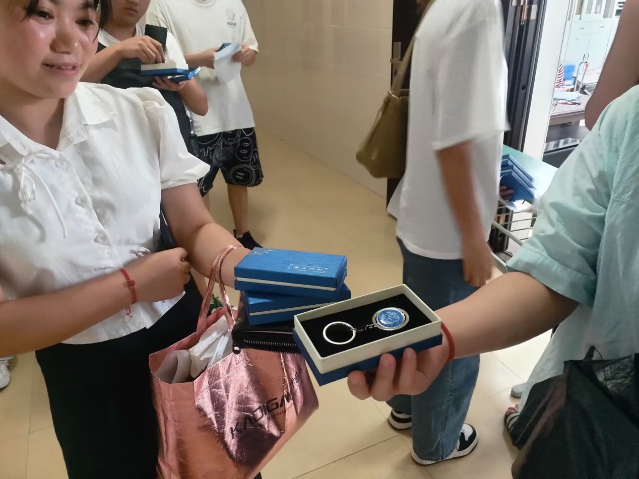 辅导员冉姣针对毕业生开展了毕业季教育工作,对离校前宿舍、交通等安全问题重点告知同学,也对离校毕业证、学位证领取等事宜进行强调。辅导员杨夏对毕业生离校前党、团工作进行安排,详细讲解了党、团组织关系转接等具体操作流程。播放公司为毕业生精心准备的祝福视频,祝福2023届毕业同学们能够顺利毕业。最后各毕业班班长进行最后一次晚点名,同学们依次上台领取纪念品,并在黑板上签名后离场,营造了和谐温馨的毕业氛围。