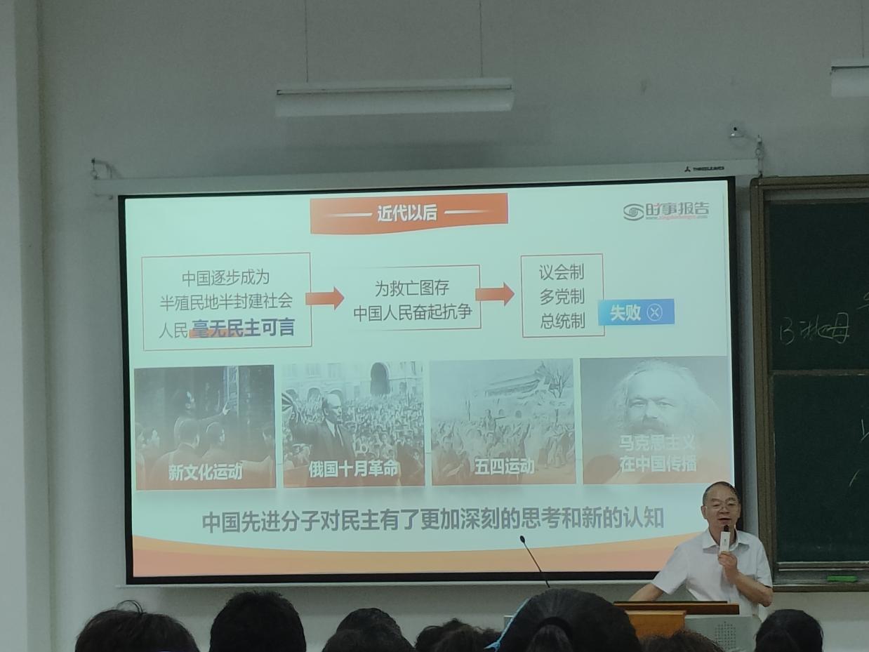 5月29日晚,公司党委书记李岩在第三教学楼第十八阶梯为公司员工上思政课。本次授课主题为《全面认识全过程人民民主》。公司2023级医信1班、2班,信计1班、2班员工参加。