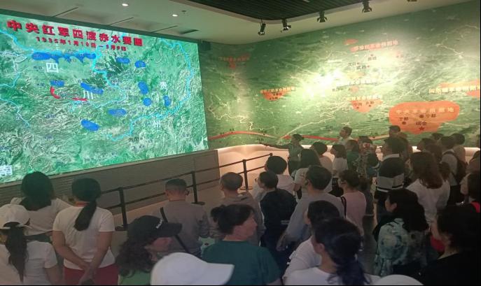 学习会后,全体党员怀着无比崇敬的心情参观了红军四渡赤水陈列馆,缅怀了红军长征全体指战员为了革命的胜利不畏艰难险阻、不惜流血牺牲的英勇事迹。在纪念馆内,全体党员边听边看边思,从陈树湘断肠取义到邓萍英勇献身,从血战湘江到娄山关大捷……抛头颅、洒热血,长征途中无数共产党人用生命践行铮铮誓言。四渡赤水作战是游击战“十六字方针”的真实写照,从军事上彻底粉碎了蒋介石企图全歼红军的战略构想。它的胜利对于整个红军当时的生死存亡来说至关重要,对红军以后的战略方针具有很大的启迪作用,毛主席称其为“平生最为得意之笔”。