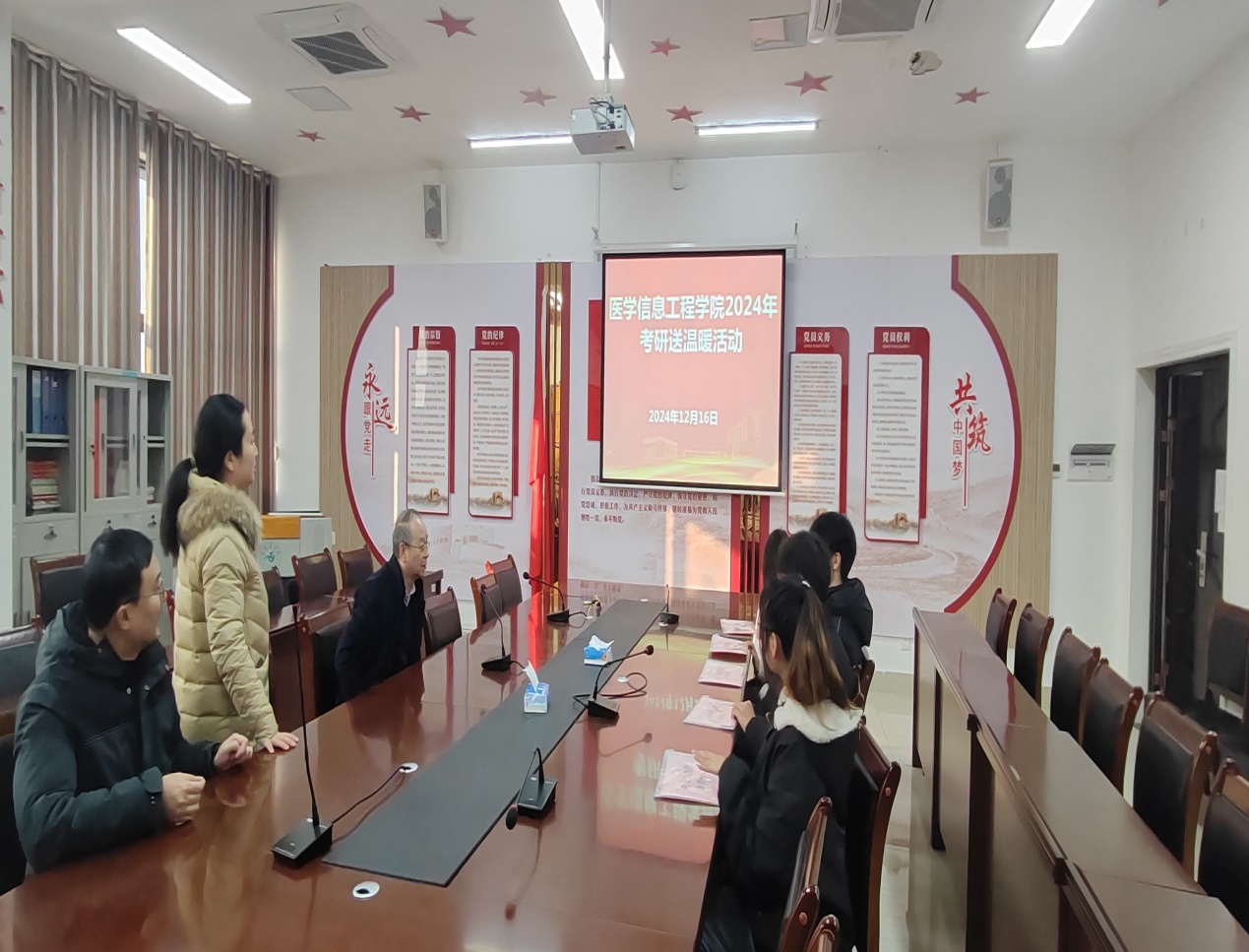 刘畅副书记叮嘱同学们:一是要认真对照考研大纲,及时查漏补缺,在这最后的紧要关头,要保持理性平和的心态,克服困难,坚持就是胜利。二是要保持乐观心态,不骄不躁,轻装上阵,沉着应对;三是要保持身体健康,注意人身财产安全,保证能顺利参加考试。