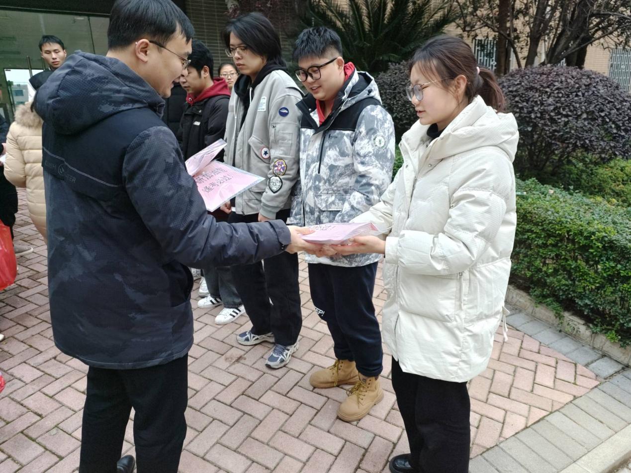 12月18日,公司又为考研学子准备了“暖心加油包”,包含暖宝贴、文具等物品,给同学们加油鼓劲。公司党委副书记刘畅、公司副经理兼教工党支部书记罗旭、员工辅导员等,走访慰问考研员工,到他们宿舍楼下送温暖。