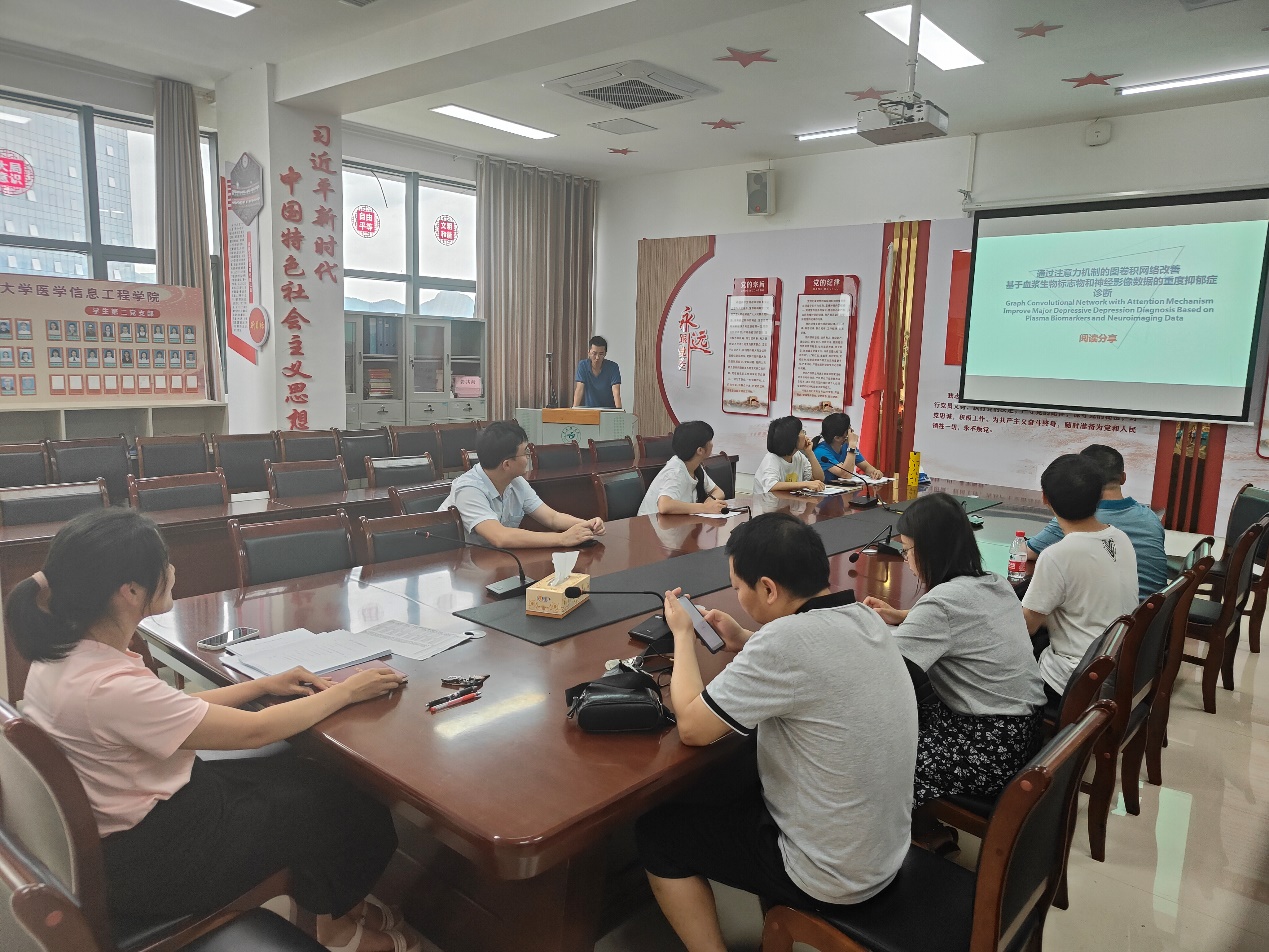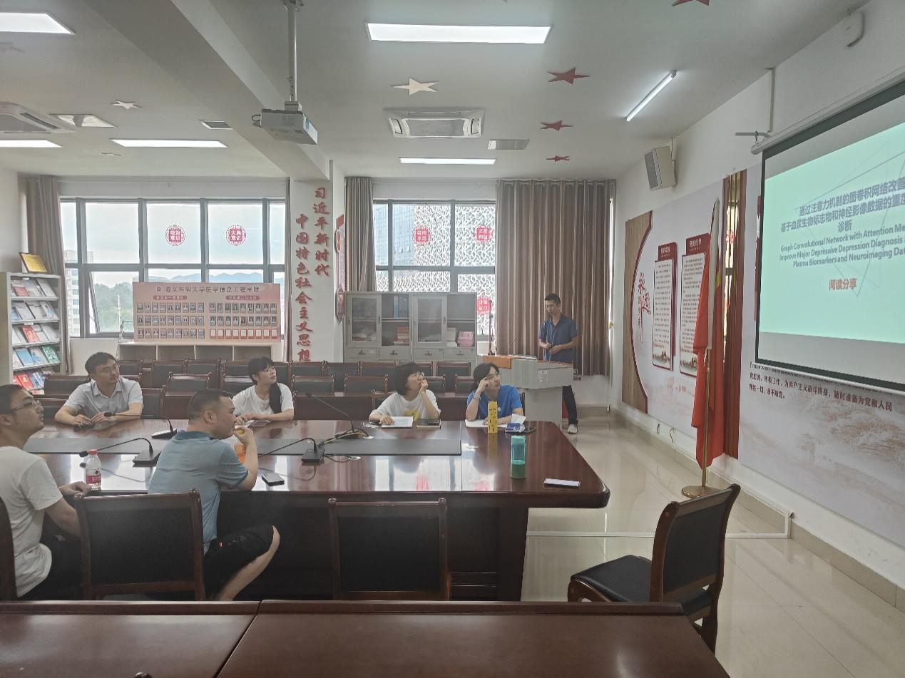 罗旭副经理先介绍了本次学术研讨活动的主要内容。李永彬老师对文献“Graph Convolutional Network with Attention Mechanism Improve Major Depressive Depression Diagnosis Based on Plasma Biomarkers and Neuroimaging Data”进行了阅读分享;强蕾老师对文献“The Association Among Inflammatory Diet, Glycohemoglobin, and Cognitive Function Impairment in the Elderly: Based on the NHANES 2011–2014”和“基于人口社会经济特征和基层医疗机构特征的我国心血管病防控相关人群和地区异质性分析及影响因素探索”进行了深度解析,并对其写作方法进行了总结。罗旭副经理分析了团队成员在临床医学方面的知识欠缺,对如何弥补短板提出了建议。最后,团队成员对存在的困难进行了研讨,罗旭副经理对本次活动进行了总结。